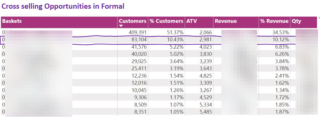 Using 12 months of POS transactions, we rebuilt the view at the basket level: one row per transaction with all items attached. We then: