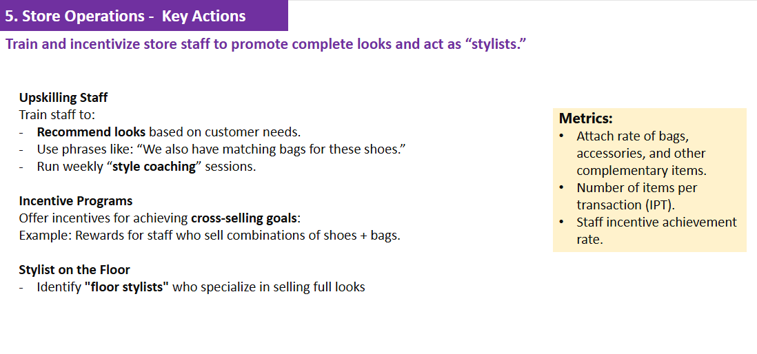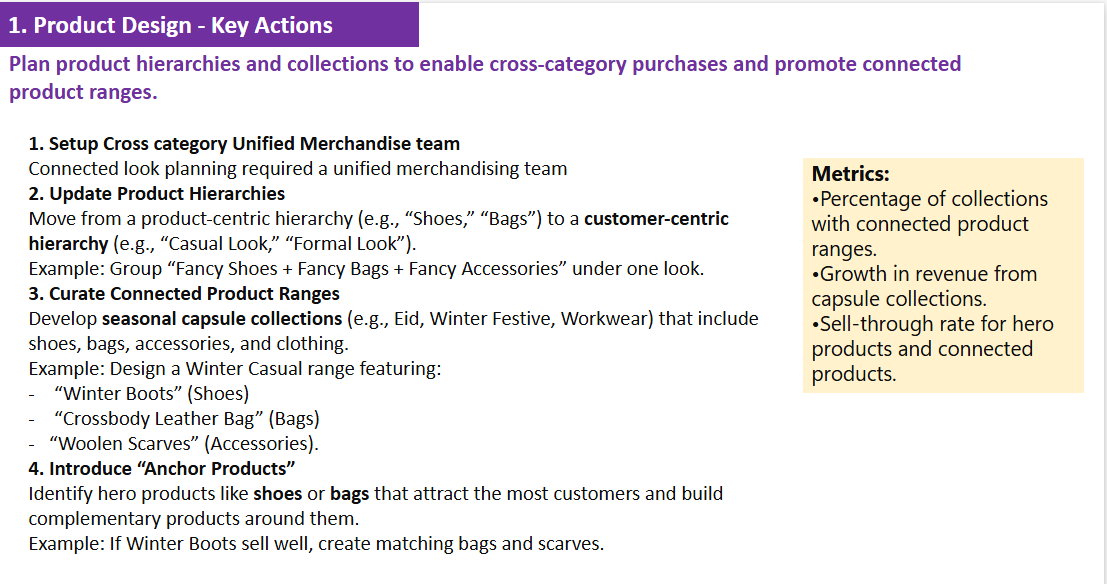 - Build connected product ranges—coordinated shoes + bags + accessories.