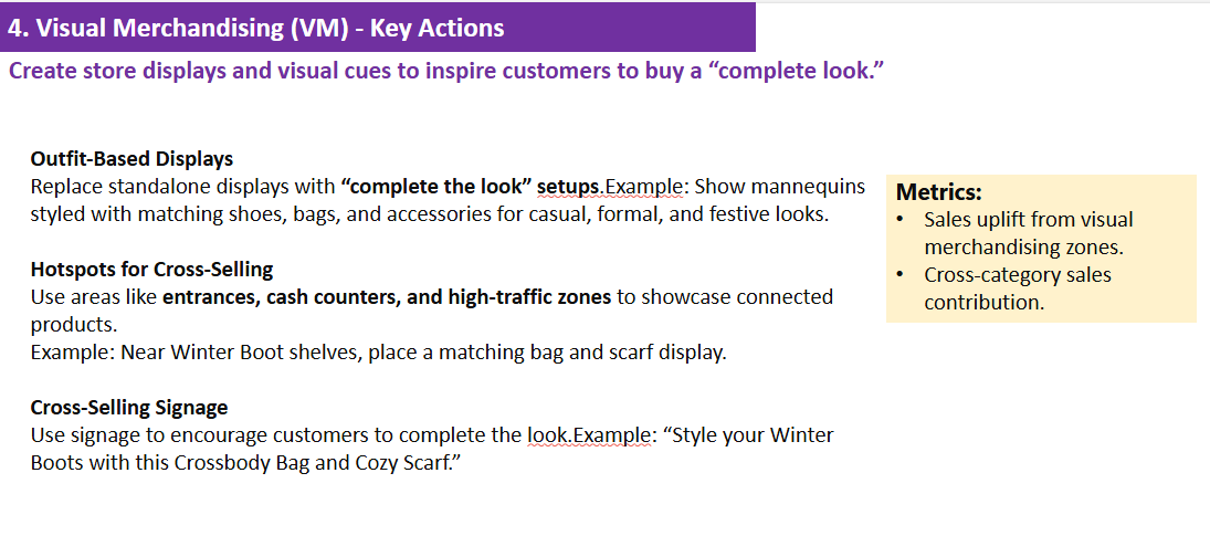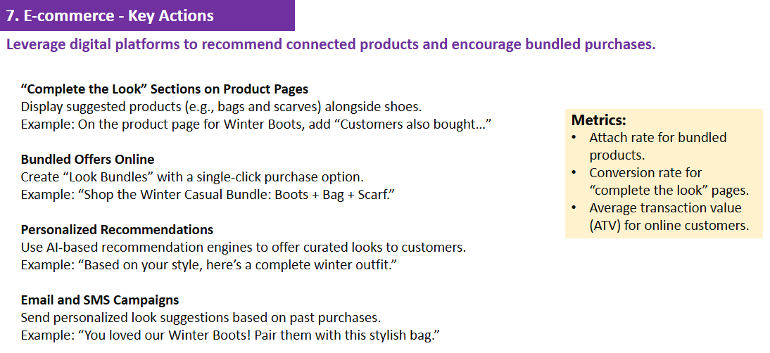 - Basket Optimization – increasing items per transaction by designing and selling complete looks instead of isolated products.
